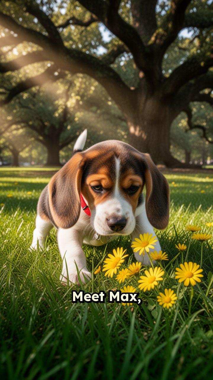 Meet Max, a playful little pup. One day, while exploring,