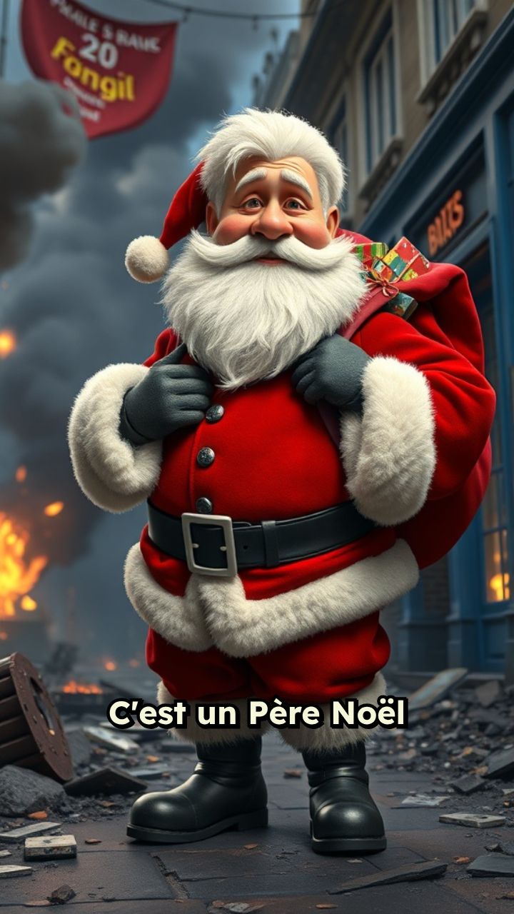 Père Noël vole des cadeaux à Toys R Us
