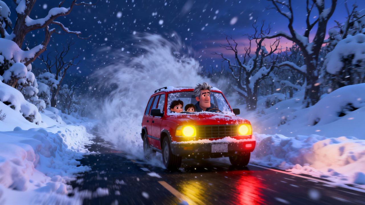 Snow fell hard on the windshield glass White as a ghost