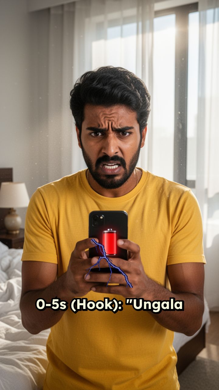 0-5s (Hook): "Ungala mobile battery seekiram gaali aagutha? Intha 1 settings-a udane mathunga!"