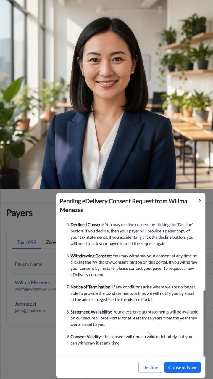 ZenworX Force. Once a payer creates and submits a 1099 form for a recipient, the recipient will