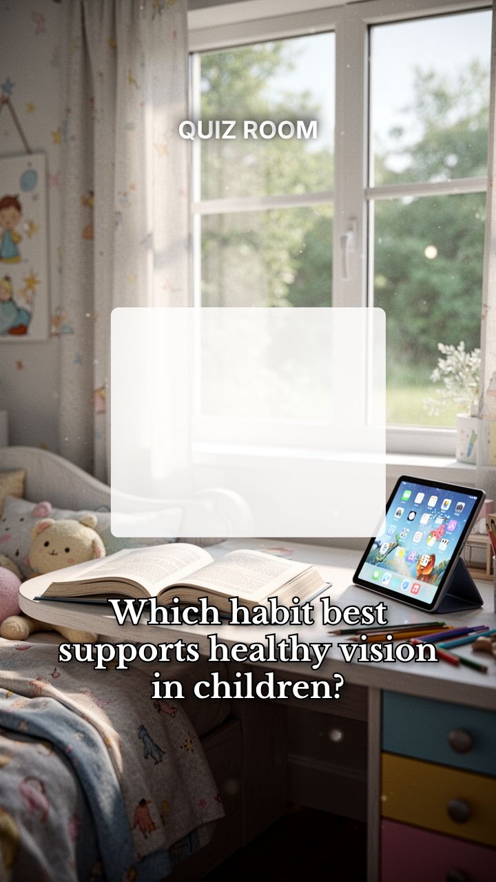Which habit best supports healthy vision in children? Why is adequate sleep important for school-age children? What most helps prevent common childhood infections? A balanced breakfast helps children mainly by: