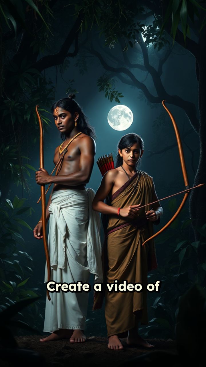 Create a video of Ramayana in which Rama is searching for Sita along with Laxman at night