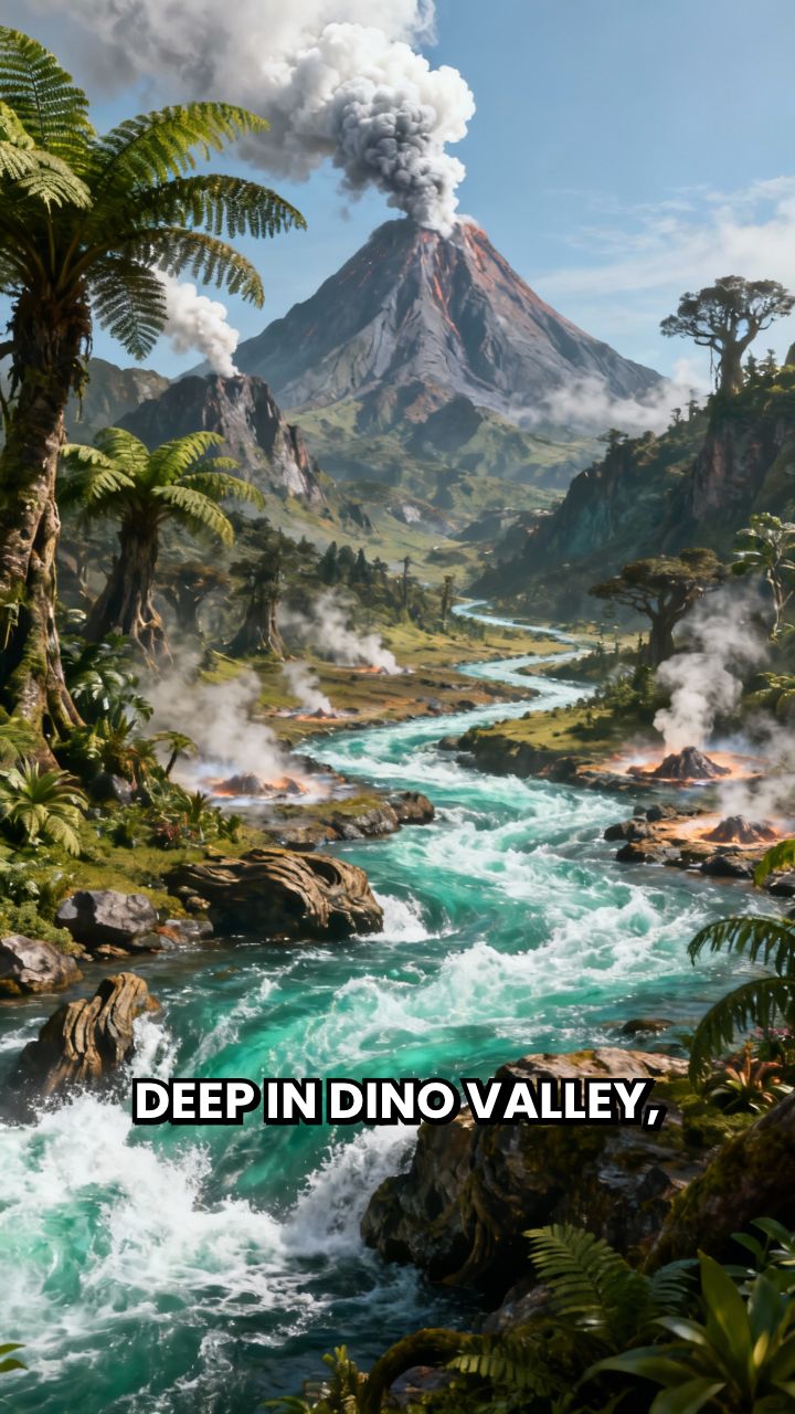 Deep in Dino Valley, where the volcanoes smoked and the rivers roared, lived a little dinosaur