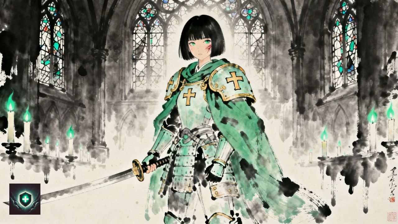 kneeling, steel hands whisper names. Great Master lifts his visor,