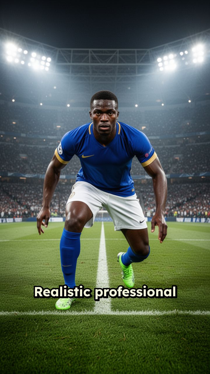long distance setup outside the box. Cinematic stadium, crowd blurred, dynamic tracking