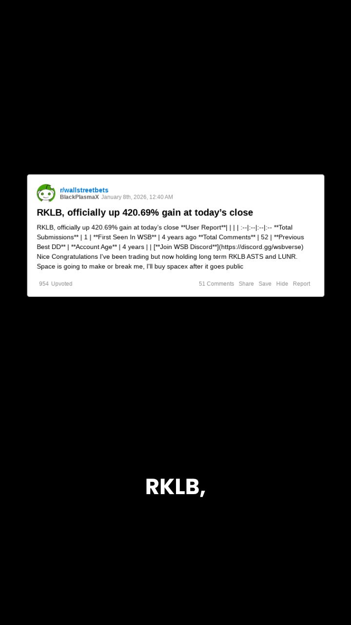 RKLB Up 420.69% at Close