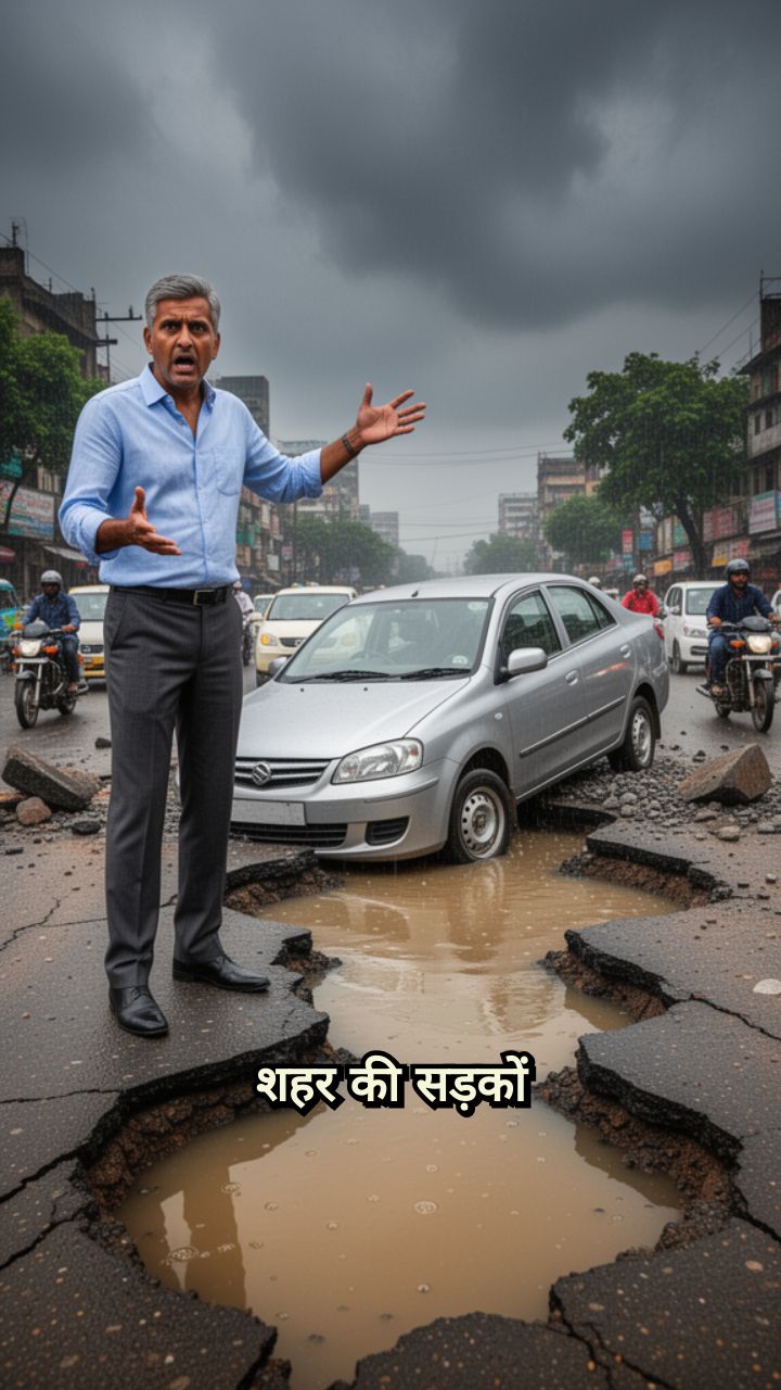 शहर की सड़कों पर गड्ढे इतने बड़े हो गए हैं कि लोग कह रहे हैं