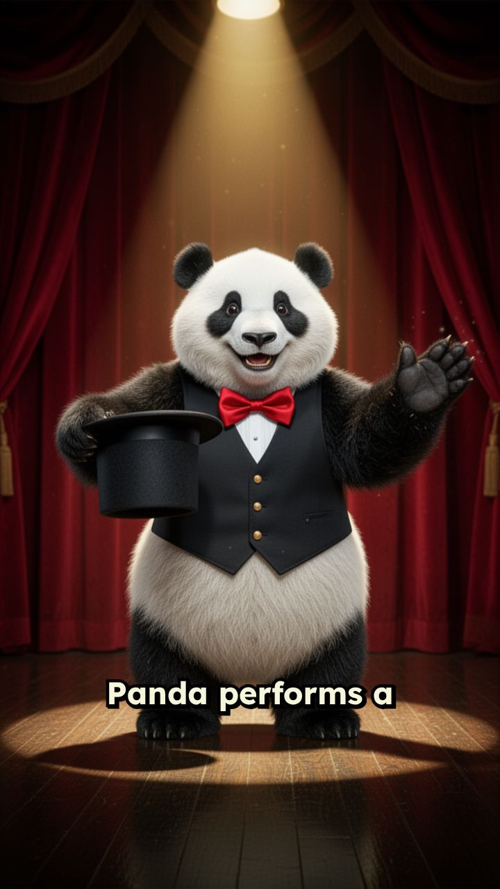 Panda performs a magic trick, opens a hat expecting flowers. Instead,