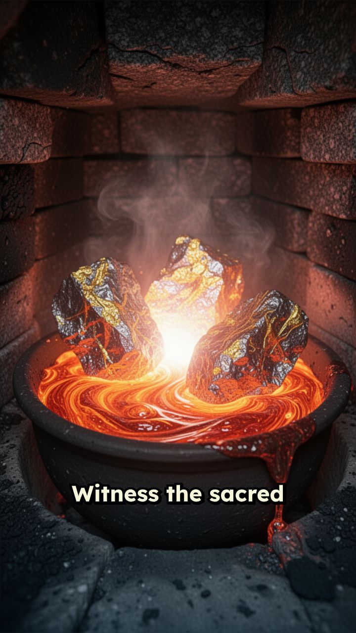 molten and ready for the mold. The raw essence emerges, cooling into a
