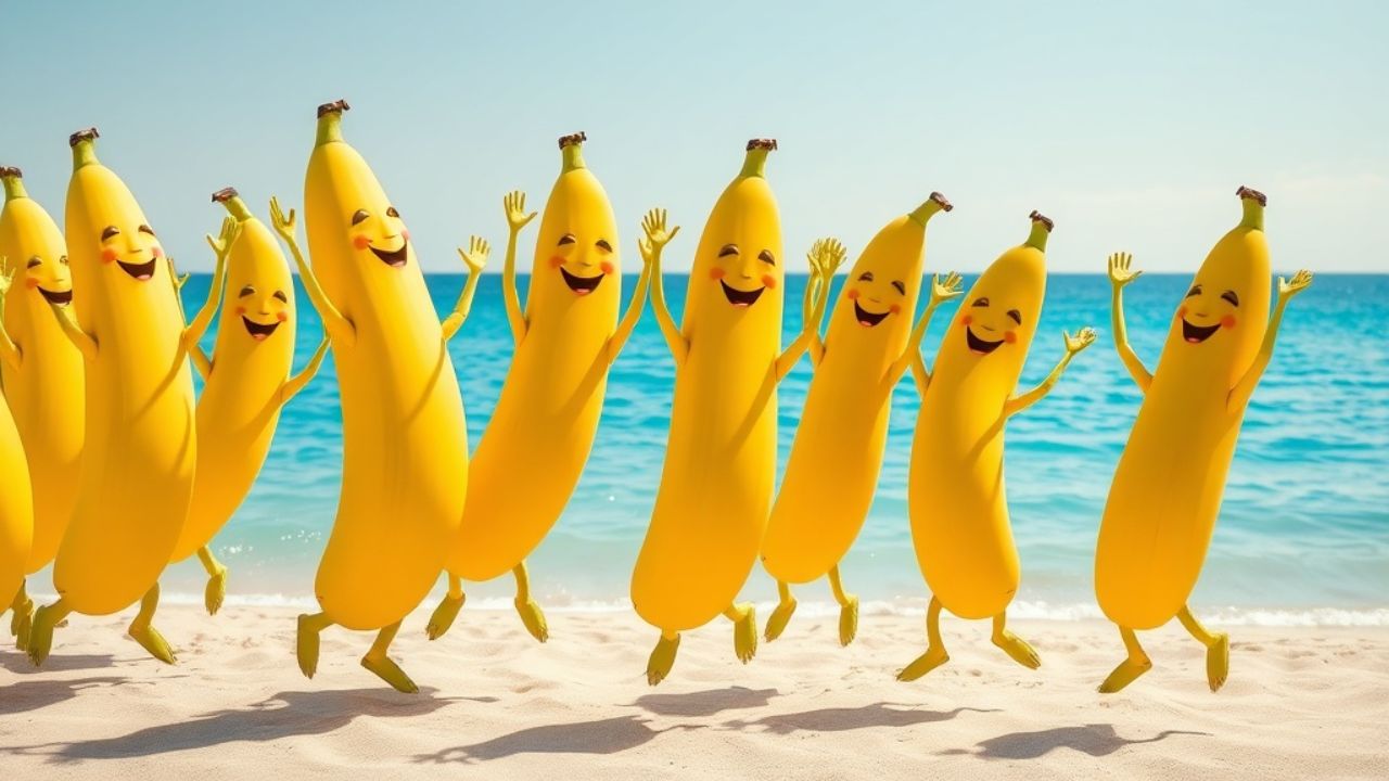Salta, salta banana. Batti le mani banana. Scuoti,