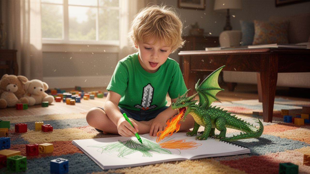 Samuel's drawing dragons Tablet in his hand Charlie’s got his mobile