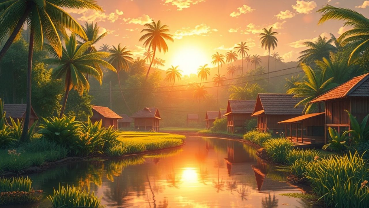 adlaw. Balay-balay nga yara sa tupad sang suba. Nagatindog nga punosang