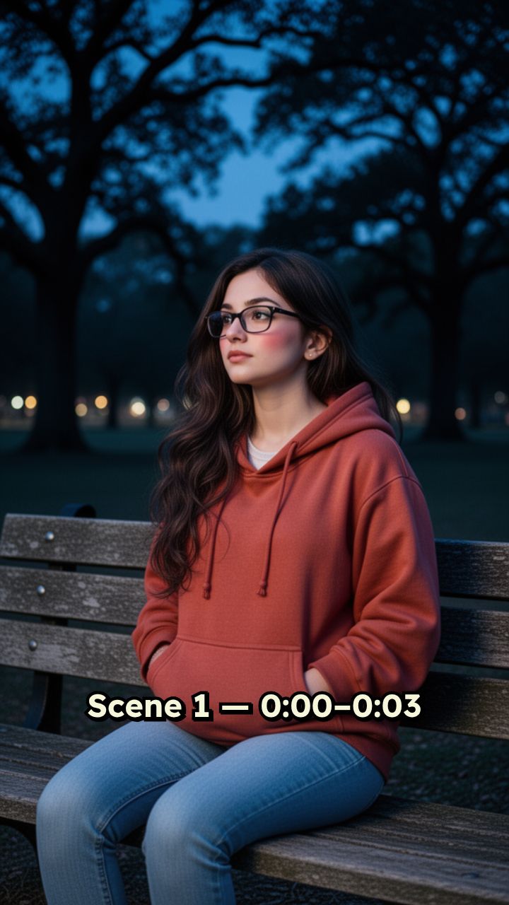 Scene 1 — 0:00–0:03 📌 Camera slowly zooms in on the girl Text: She used to