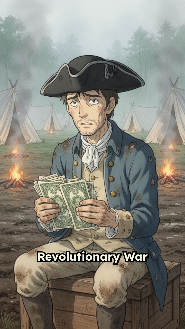 Revolutionary War soldiers got paid in worthless paper money that plummeted in value.