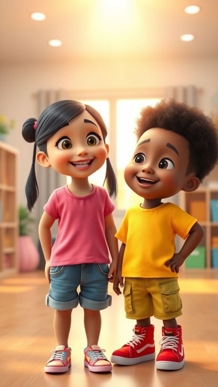 Jump around, spin, clap your hands. Friendship and laughter fill our lands.