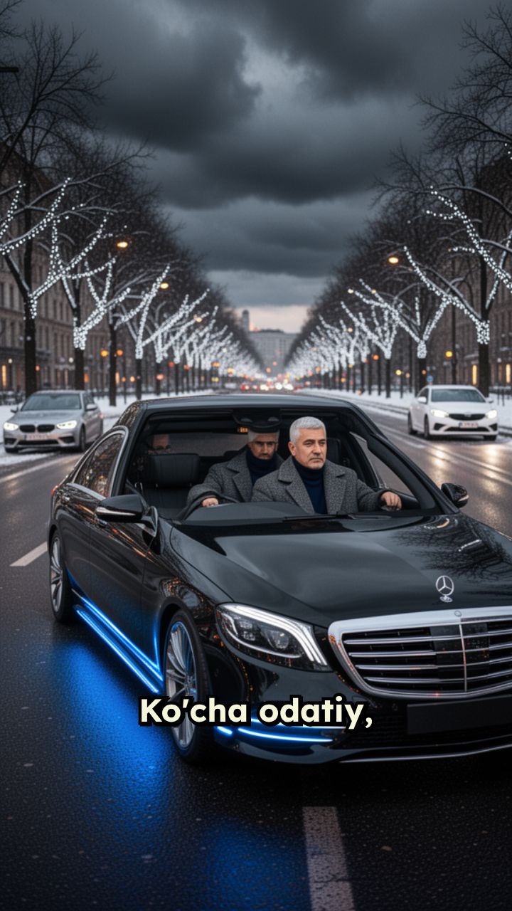Ko'cha odatiy, qora led tyuning qilingan mercedes-benz harakatlanmoqda, juda ham kuchli