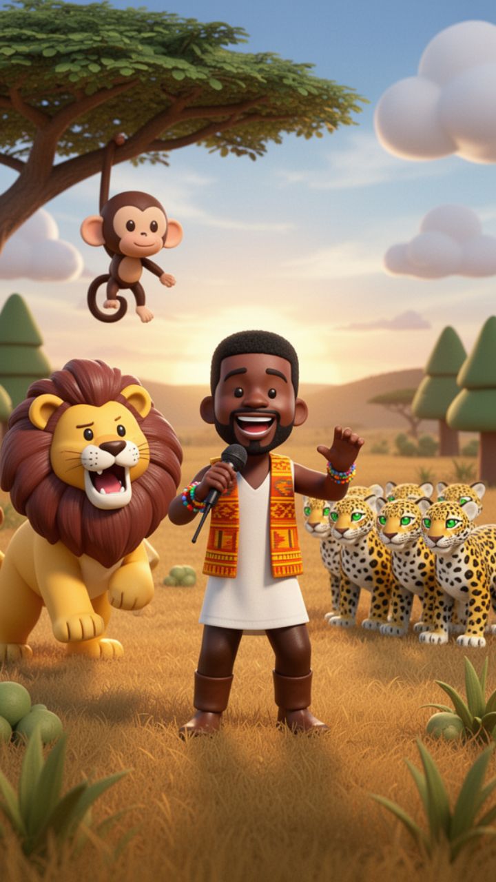 olha o rugido do leão. Três vezes um é três, e o macaco