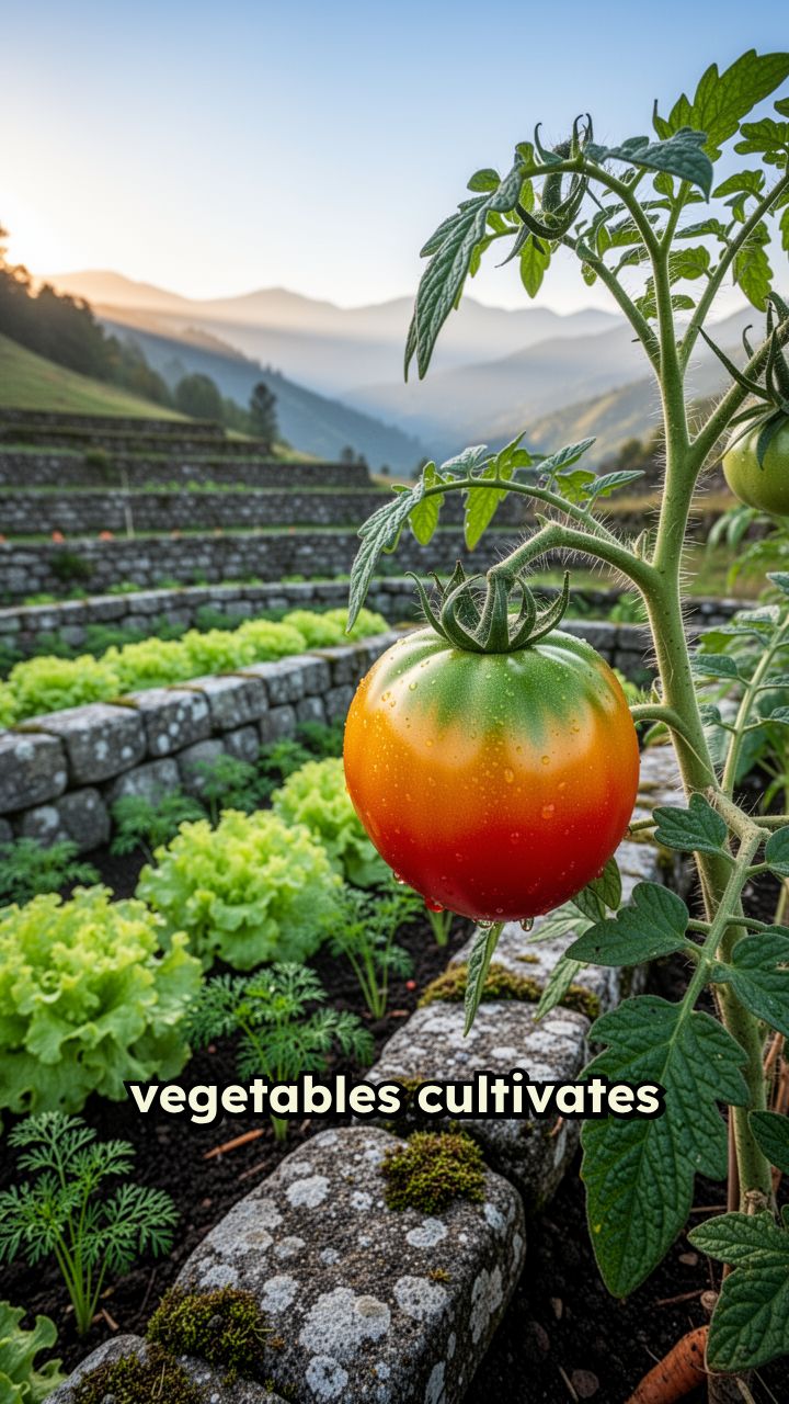 vegetables cultivates on teracces and growing slowly and one day tomato becomes green to red