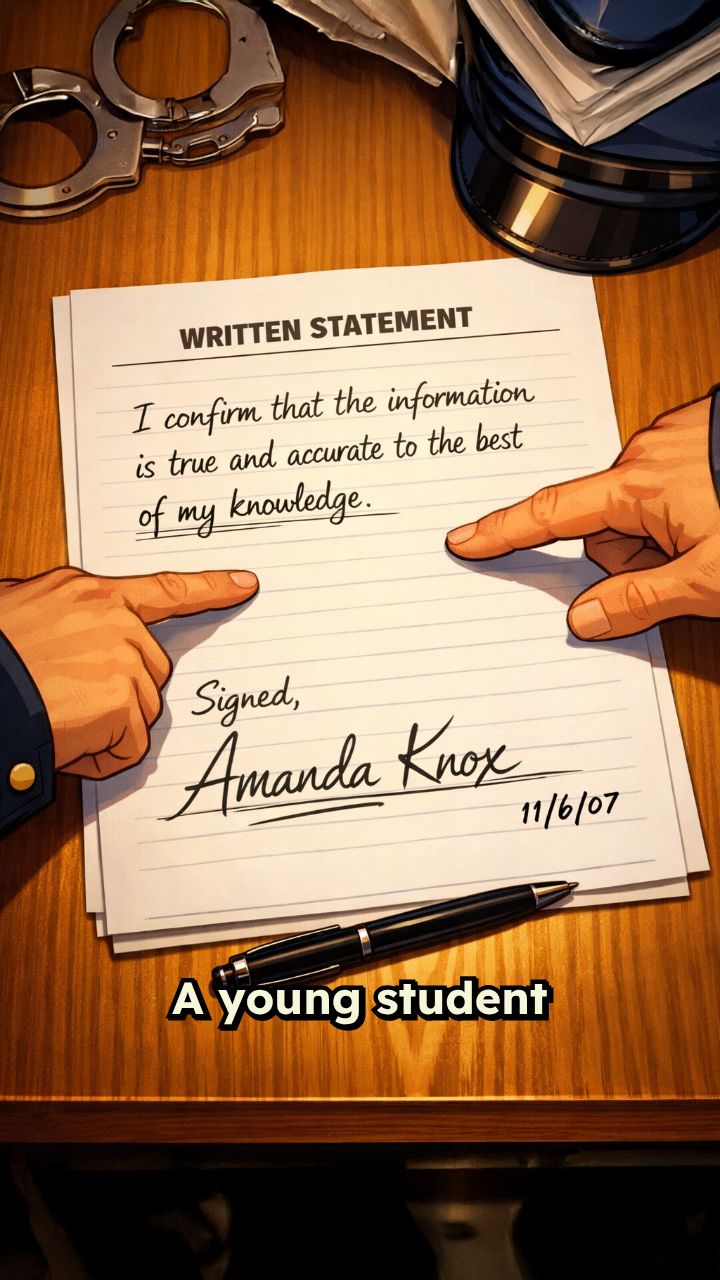 During a lengthy overnight interrogation, Knox signed statements placing herself at the apartment