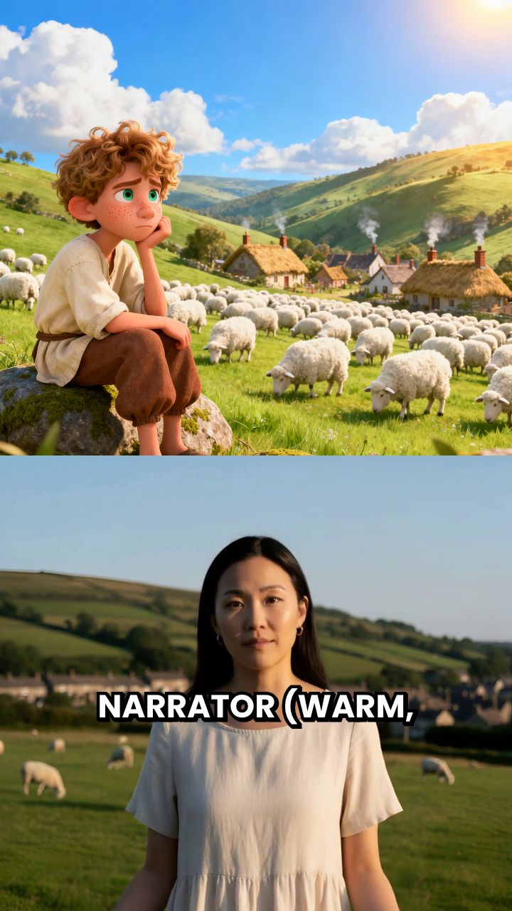 Narrator (warm, engaging voice): "Once upon a time, in a quiet village, there lived a young