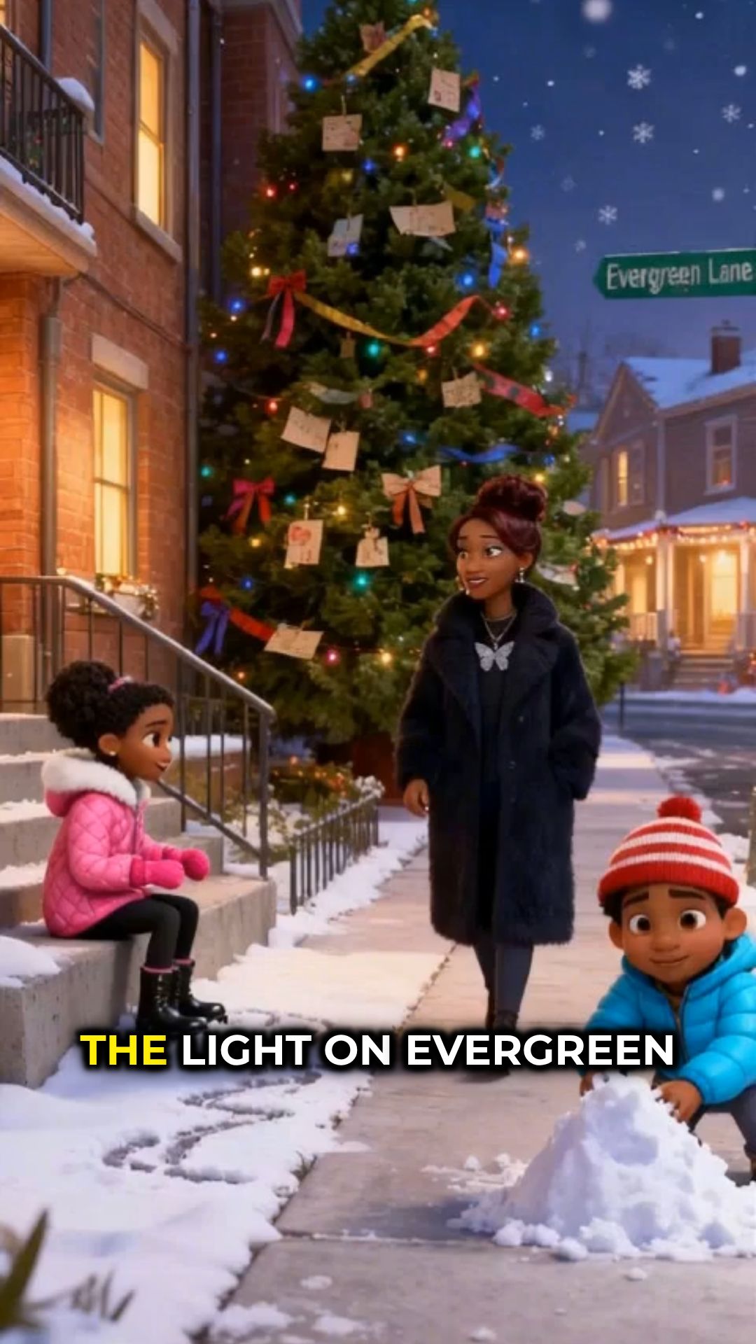 THE LIGHT ON EVERGREEN LANE At the center of Evergreen Lane stood a tall evergreen