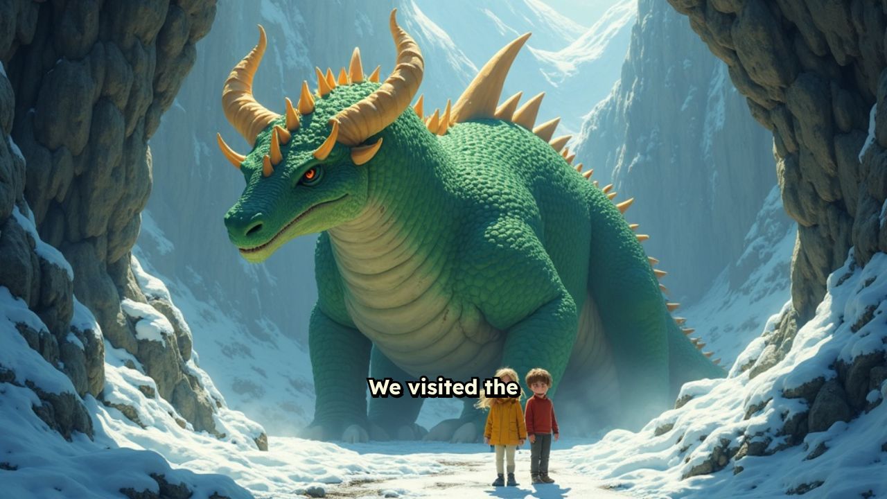 We visited the dragon inside his mountain home. He looked surprised and shouted,