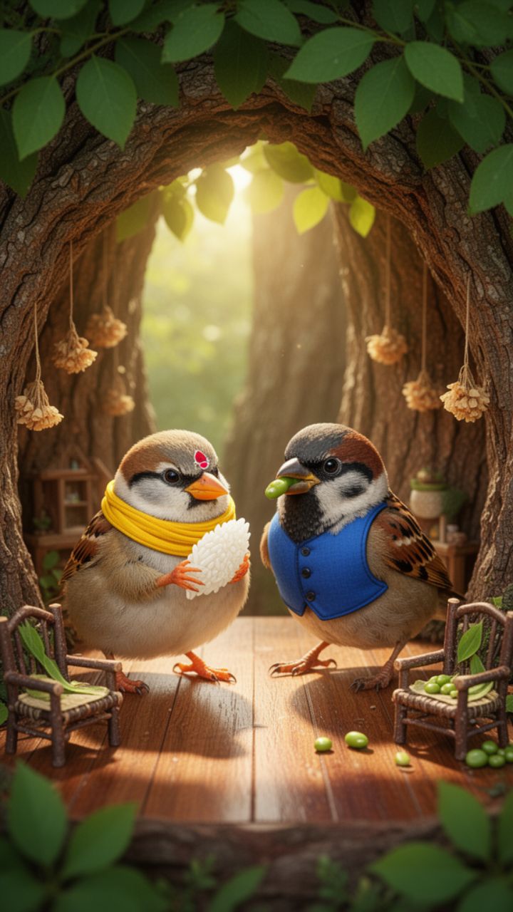 એક હતો ચકો અને એક હતી ચકી. ચકલા ચકલીની વાર્તા ચકી લાવી, ચોખાનો દાણો અને