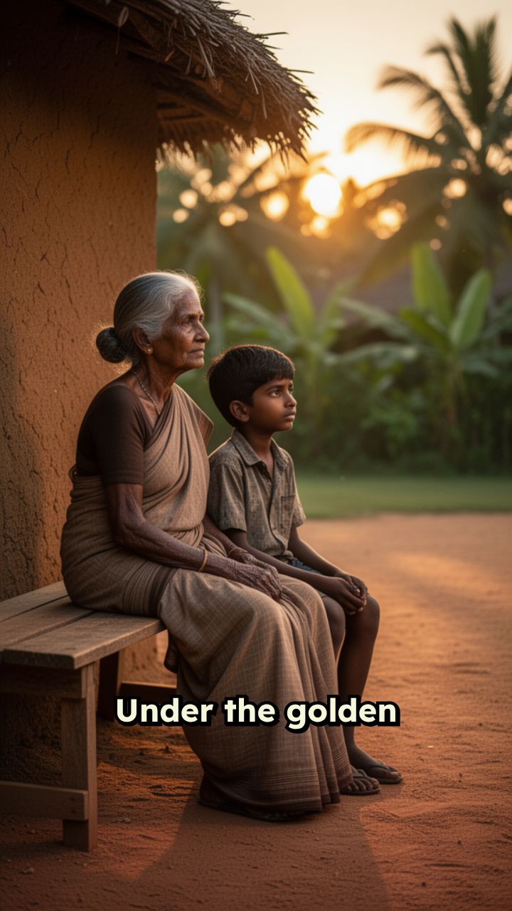 Under the golden evening sun, a mother and son share a quiet moment of