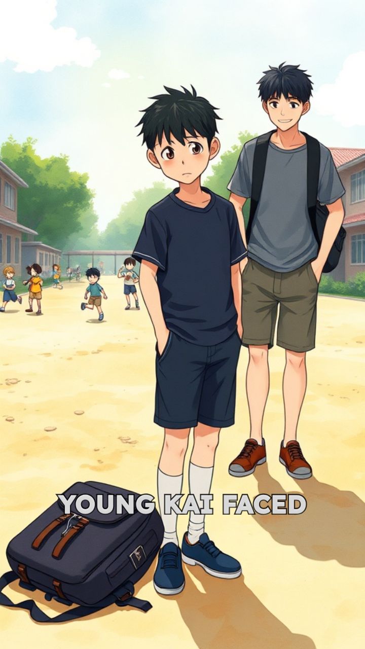 Young Kai faced bullies in the schoolyard. Shoves and laughter, his schoolbag tossed,