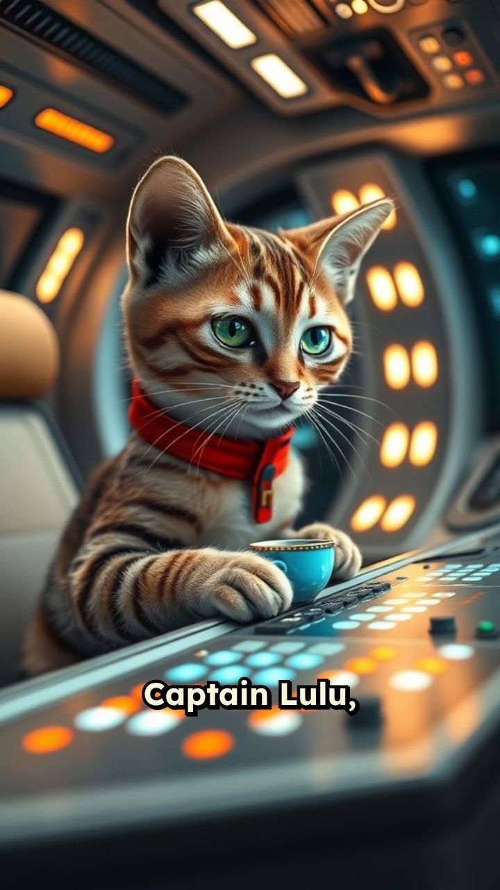 Captain Lulu, a calm tabby cat, was peacefully sipping space-tea.