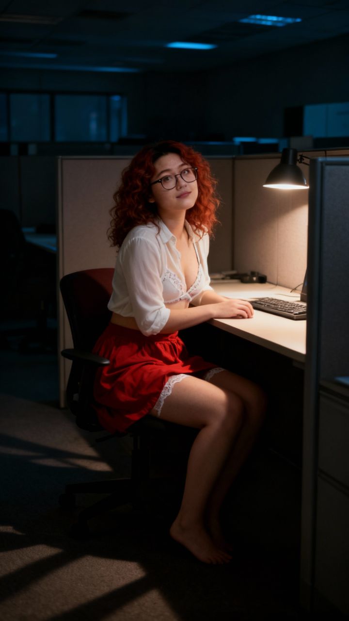 Lisa stayed late at the office, curious about the invisible entity her friend mentioned.