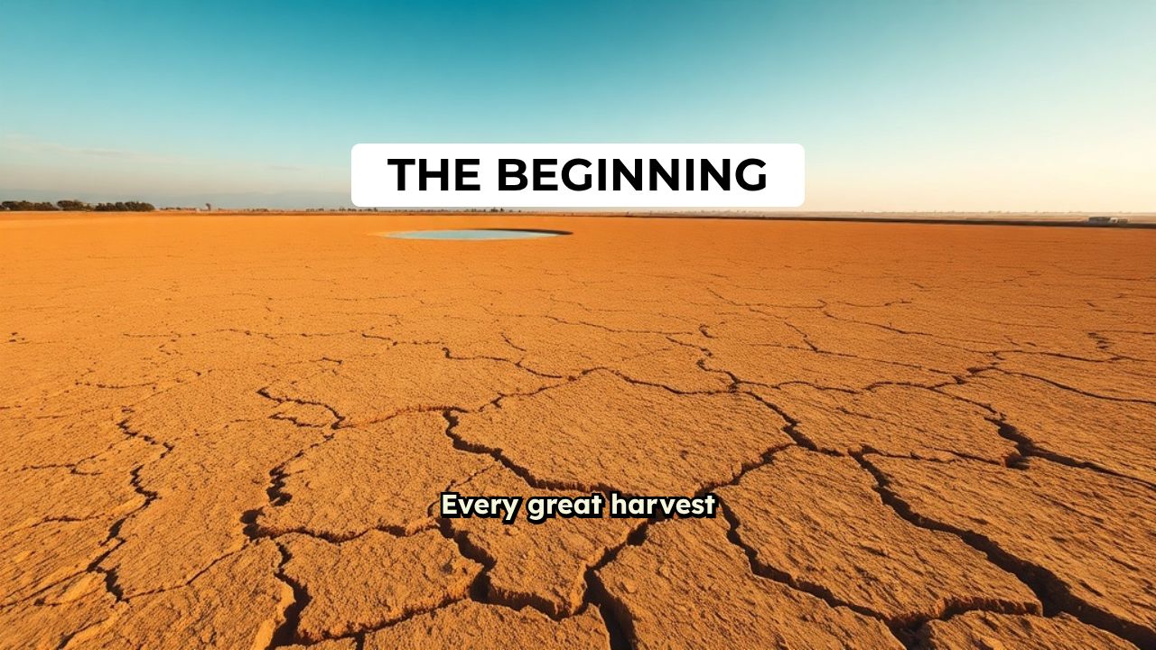 Months later, the pond is drained, revealing a bountiful harvest of mature,
