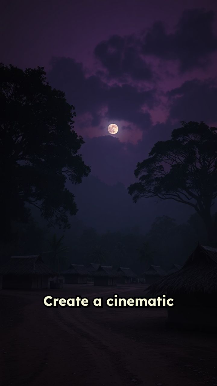 Create a cinematic realistic horror drama video set in a rural Indian village near a dense