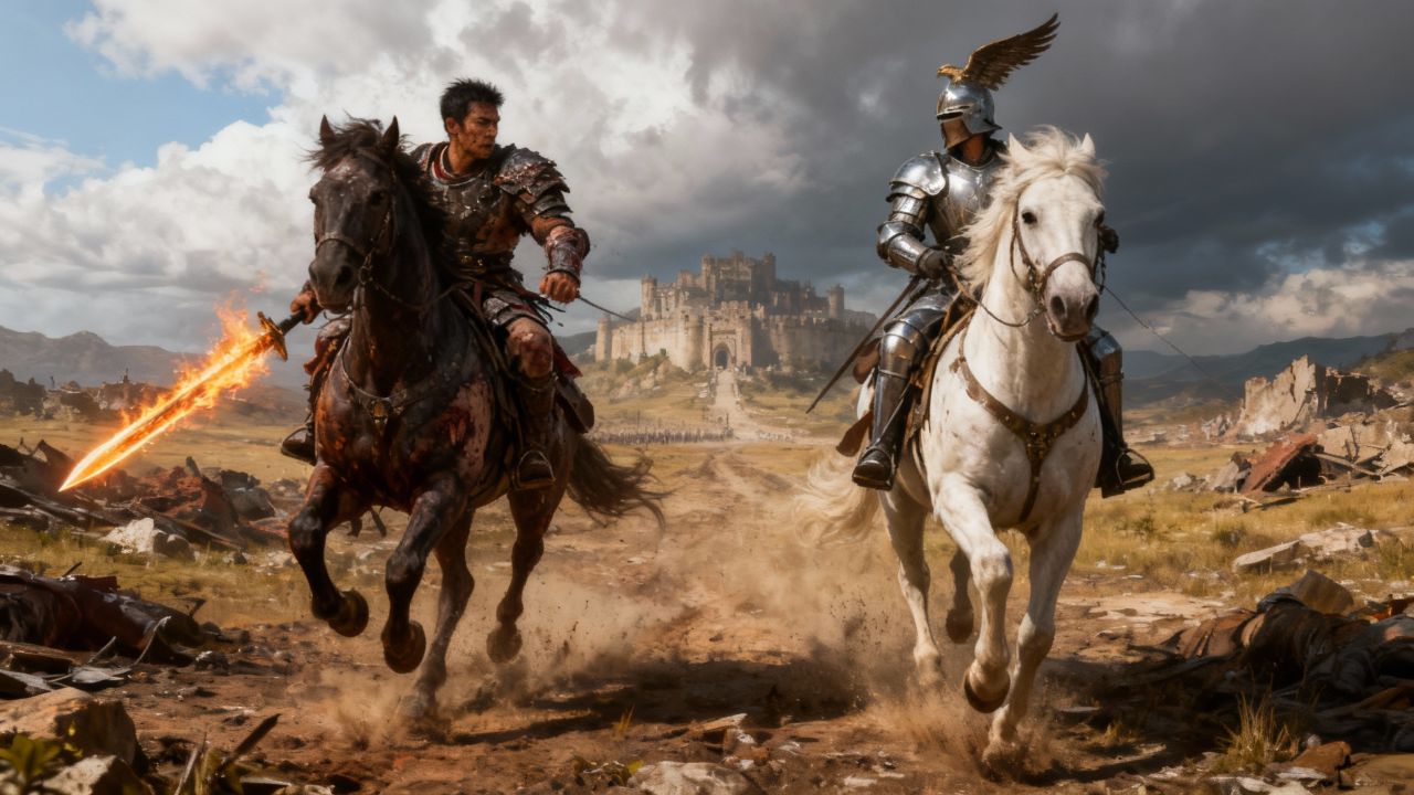 By Tavi's bold side rode a warrior most wild. With flaming blade drawn and the
