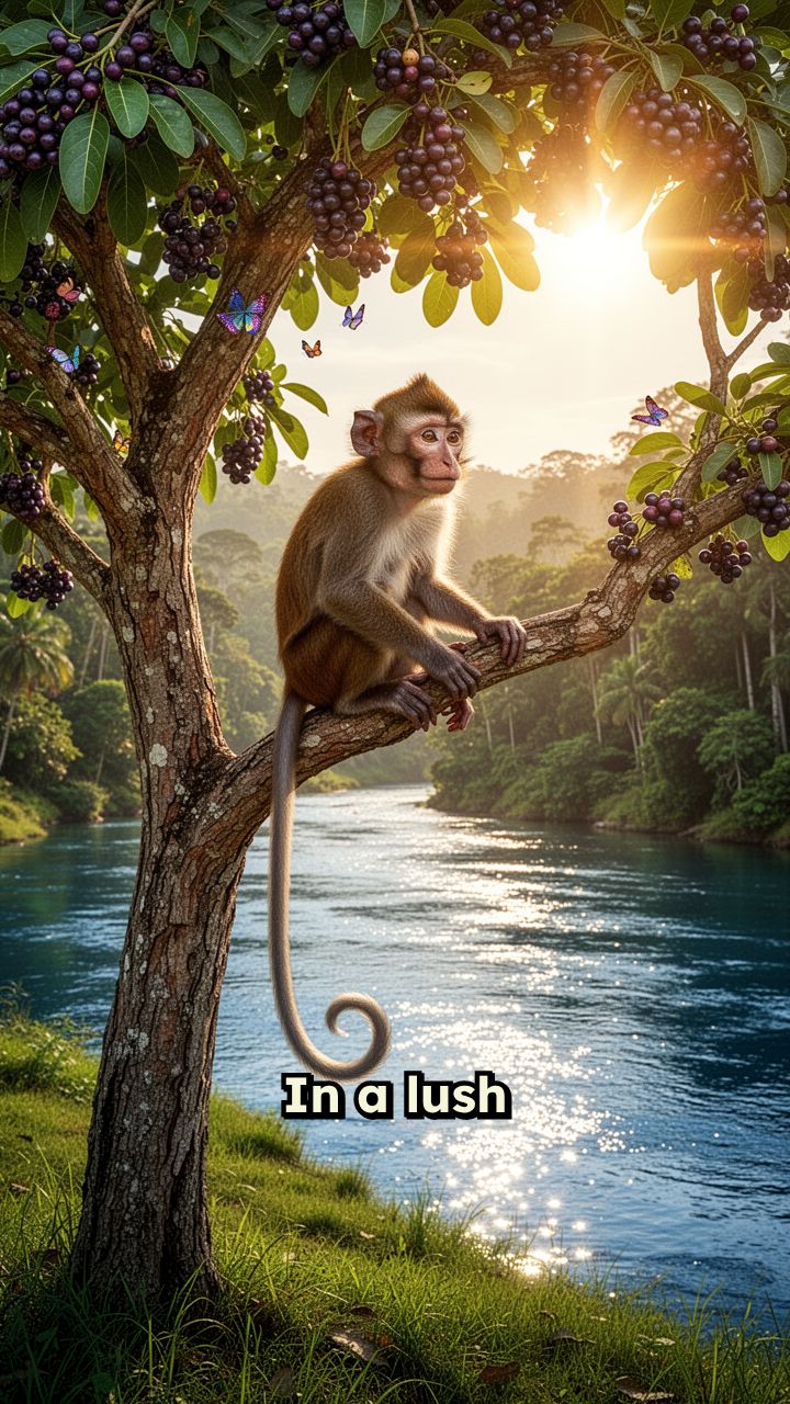 In a lush forest, a monkey lived on a berry tree by a