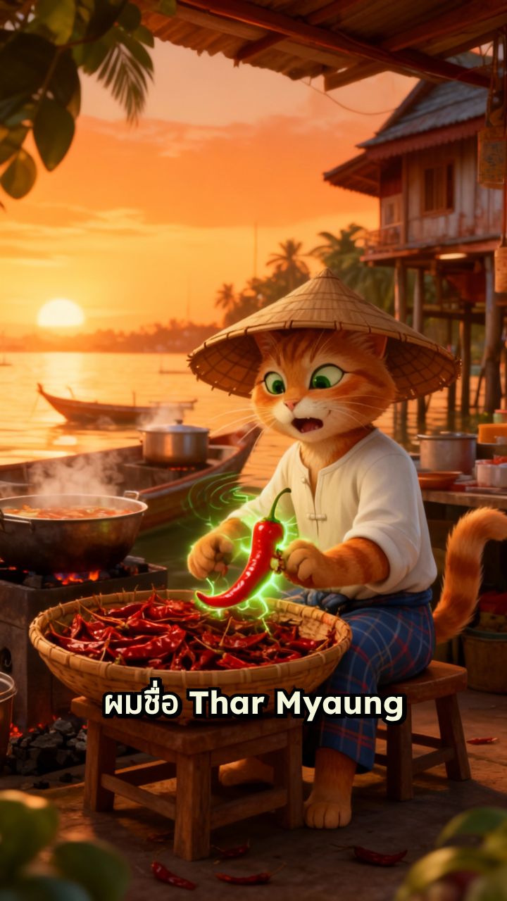 ผมชื่อ Thar Myaung ตั้งแต่ถูกพริกนั่นกัด ชีวิตการขายก๋วยเตี๋ยวเรือของผมก็ไม่เหมือนเดิมอีกต่อไป สัญชาตญาณแมงมุมของผมบอกว่า... มีใครบางคนกำลังหิวโหย ไม่ต้องห่วงครับคุณตา ผมรับไว้ทันพอดี แกจะขึ้นราคายังไงก็ได้ แต่แกจะทำให้คนแถวนี้อดตายไม่ได้!