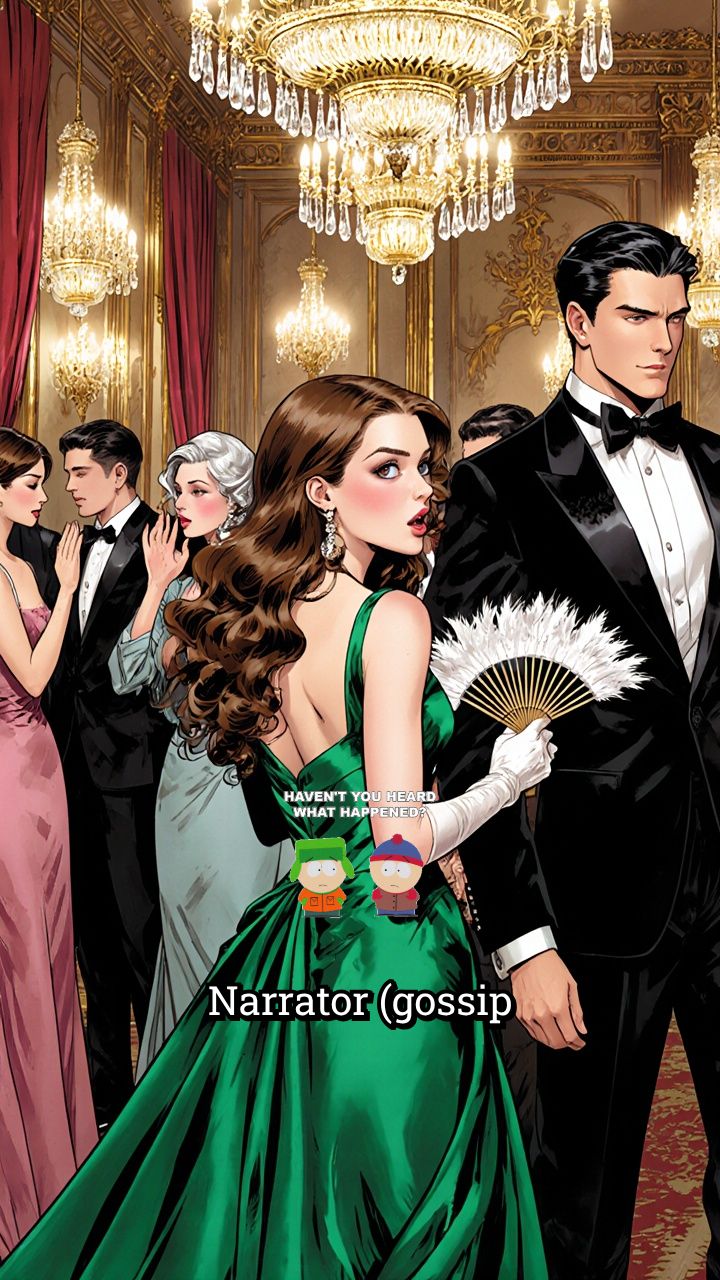 Narrator (gossip excited voice): Everyone at the fancy family banquet started whispering—she's