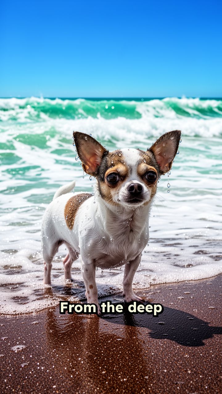 From the deep blue depths, a tiny hero emerges onto the sun-drenched shore.