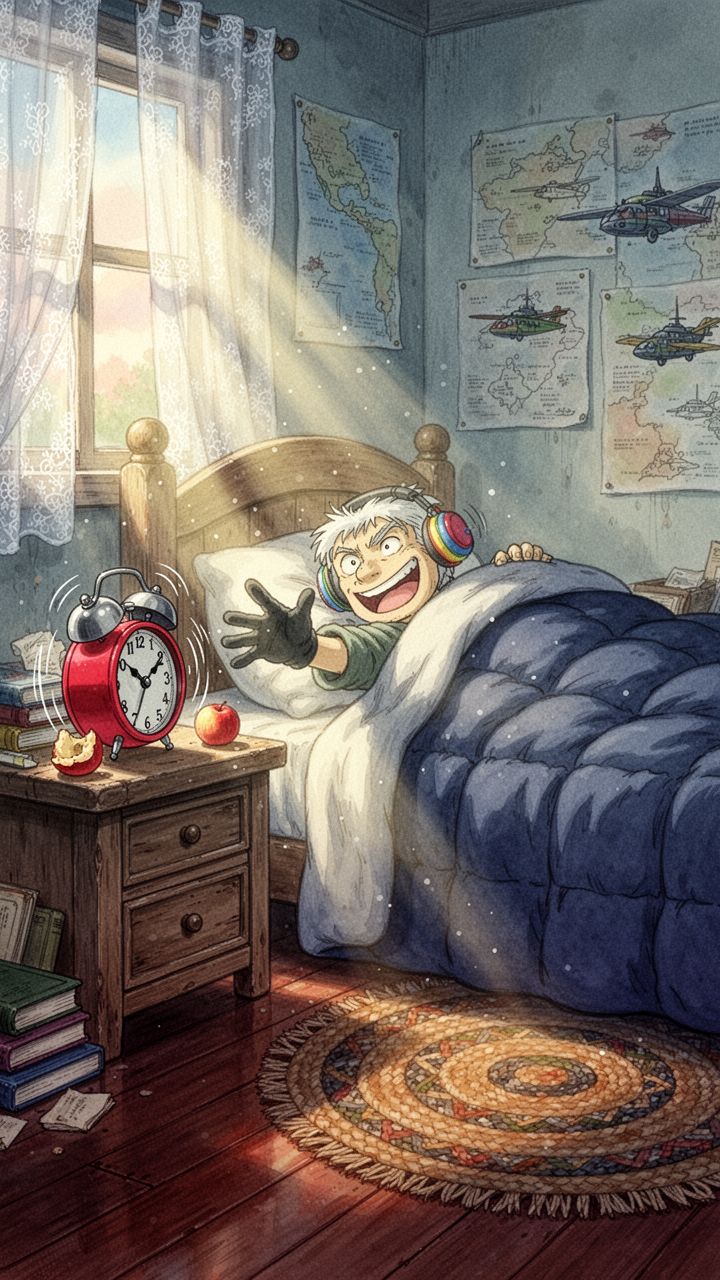 just die." Phone says seven, brain says no . Future me can
