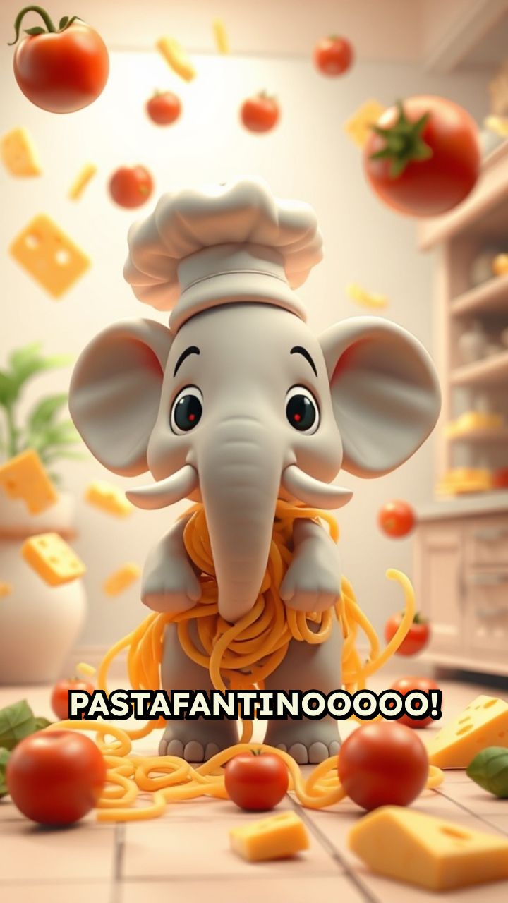 ooooh pasta pasta no no no spaghetti spaghetti elefantuchi chiefenuchi Cosa fai? Cosa guardi? Spaghetti volanti! Una torta!