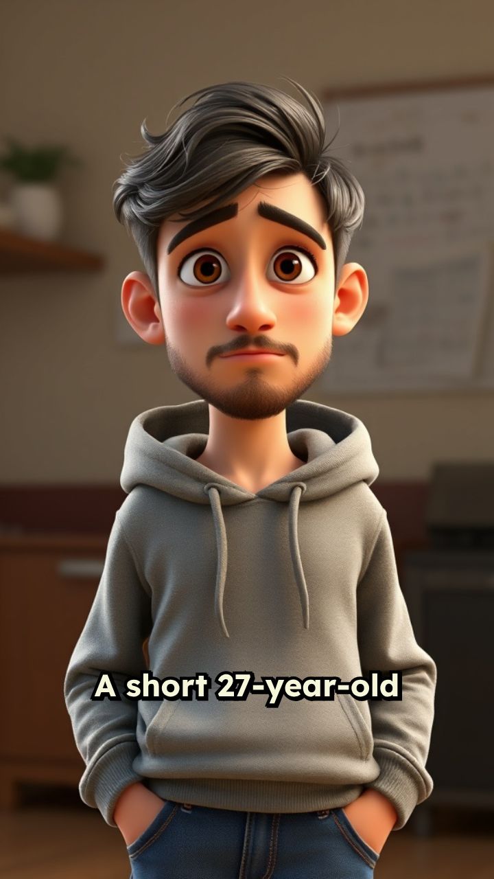 A short 27-year-old man with a beard and mustache, still a student, struggling through