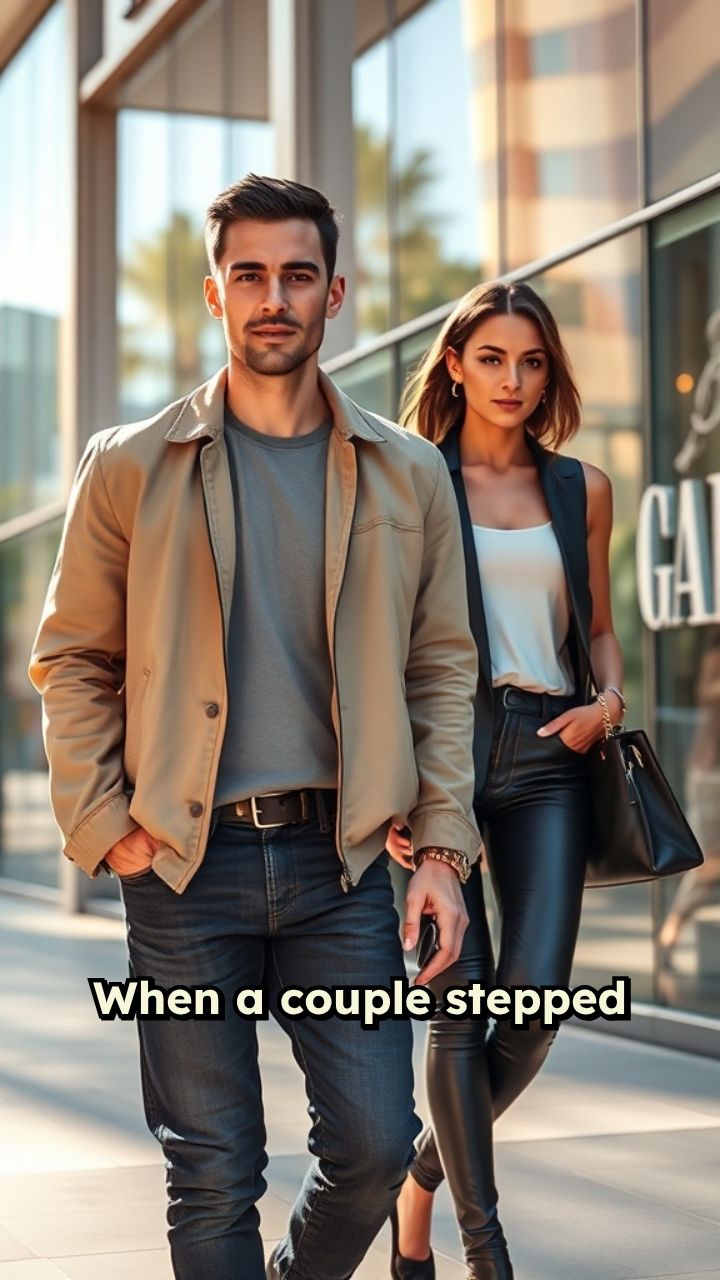 When a couple stepped out of a busy shopping mall, laughing and holding shopping bags,