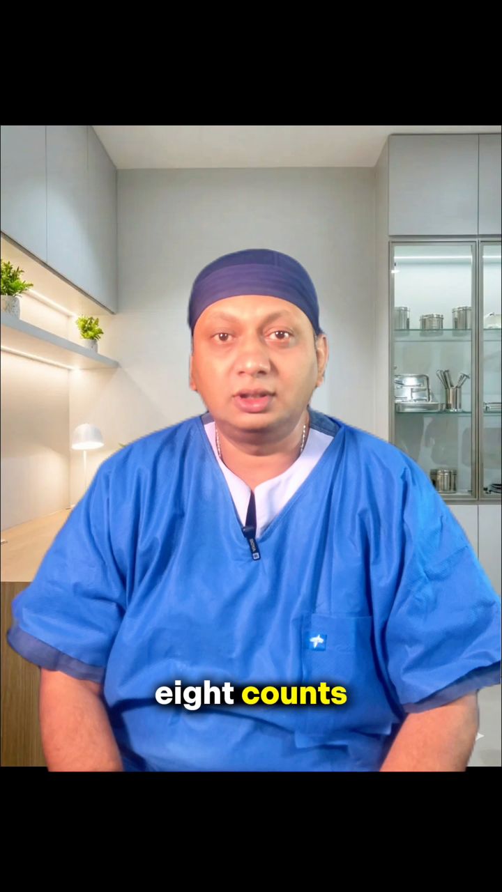 on top of that. Then exhale slowly through your mouth for six to eight counts.
