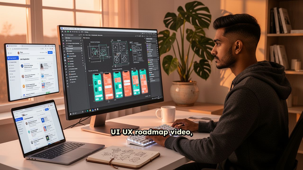 UI UX roadmap video, ui ux mockups, figma tool, applying jobs...