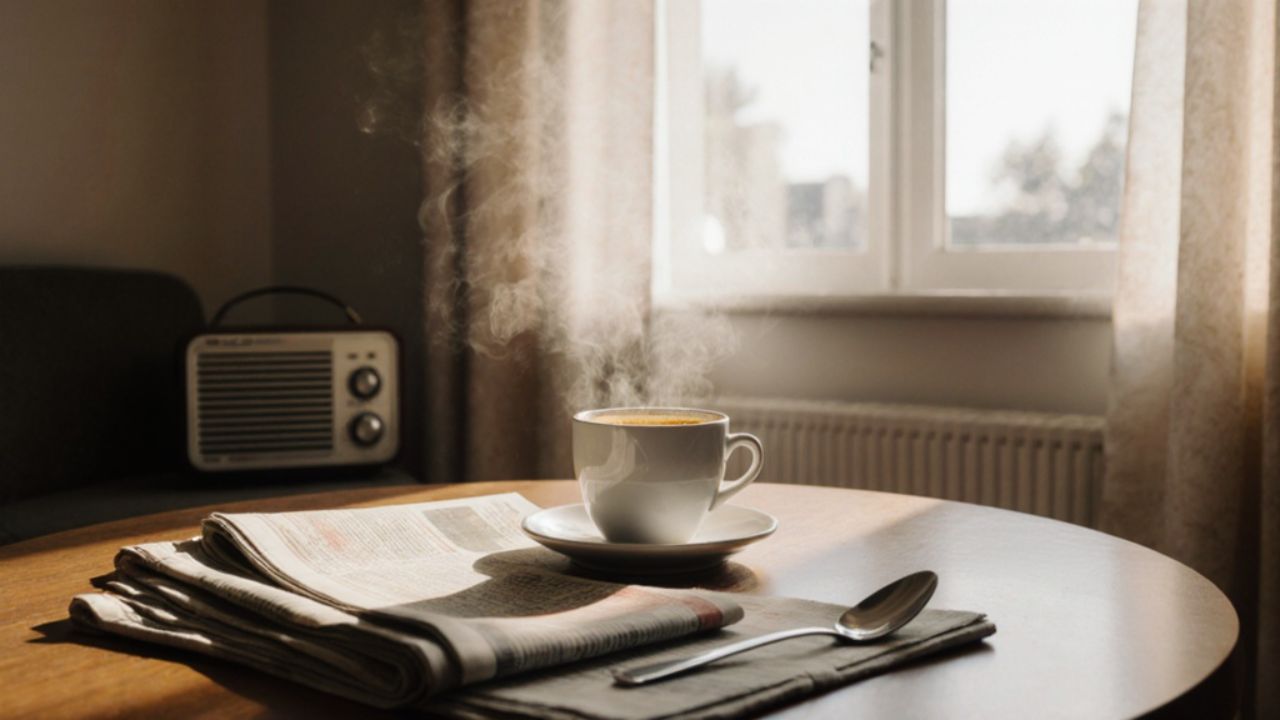O som da rua entra pela janela. Se mistura com notícias que o