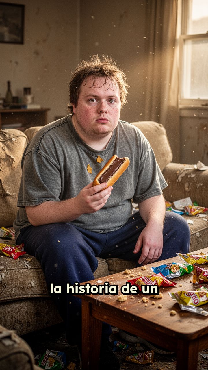 la historia de un tipo que esta comiendo todo el dia pastelitos como bollycao, pantera rosa,
