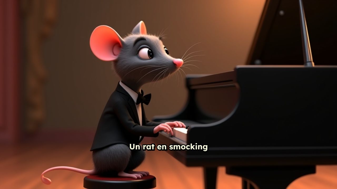 Un rat en smocking joue du piano
