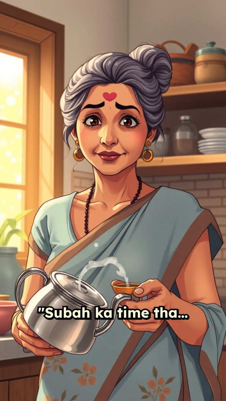 "Subah ka time tha… Maya Mehta (55 year old indian mother) kitchen me chai bana rahi thi.