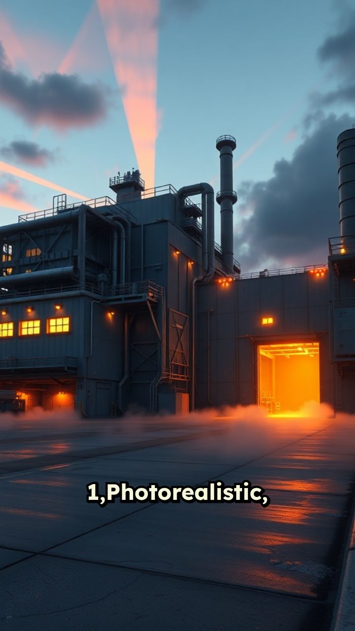 slow dolly-in toward the building. Industrial, raw atmosphere in the style of NextGen